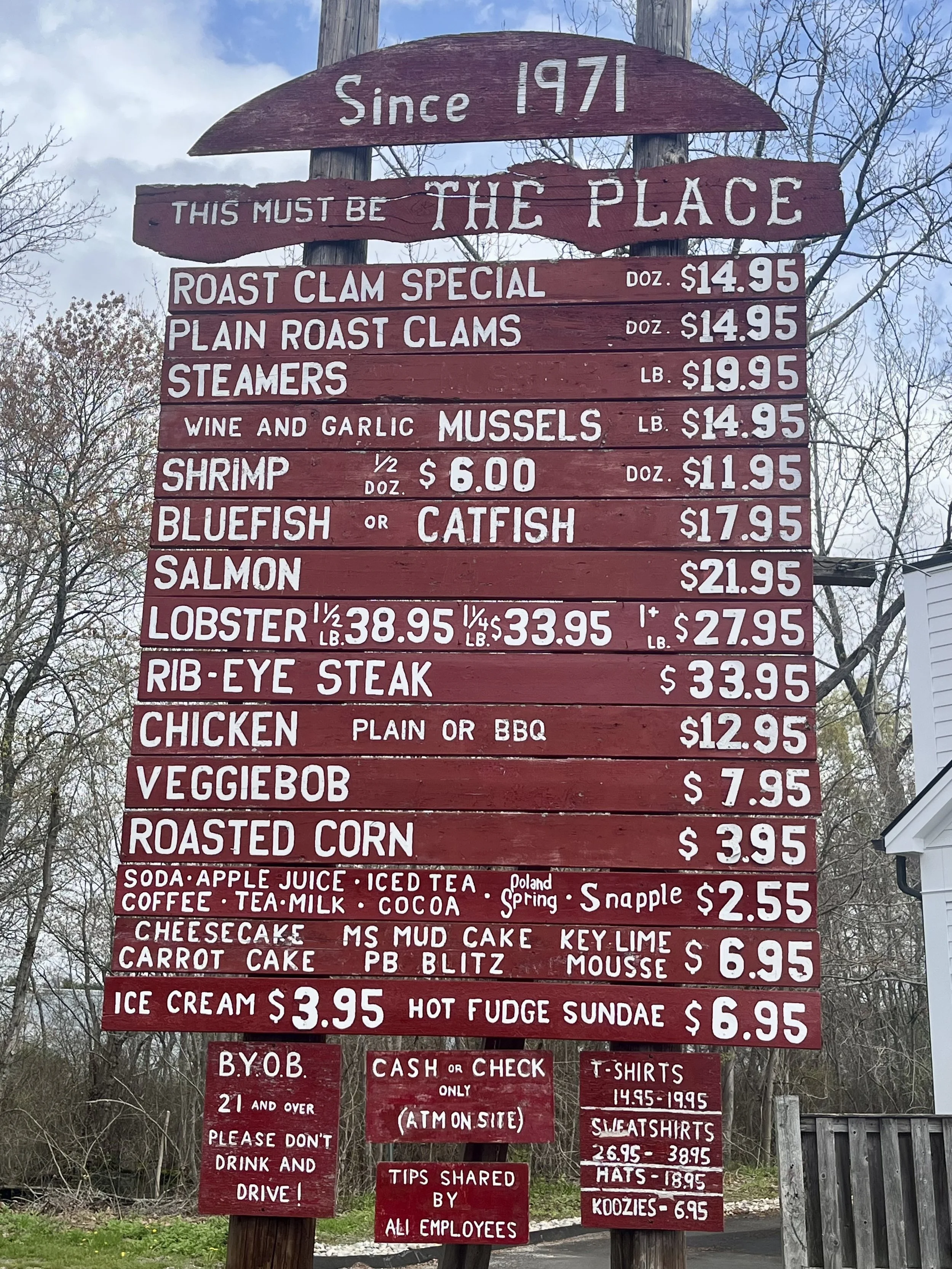 For both, littleneck clams are roasted directly over the fire until they open up. The “Plain Roast Clams” are served as is, but the “Roast Clam Special” is dressed with a cocktail sauce and buttery mixture and then put back on the fire to roast in the flavor.